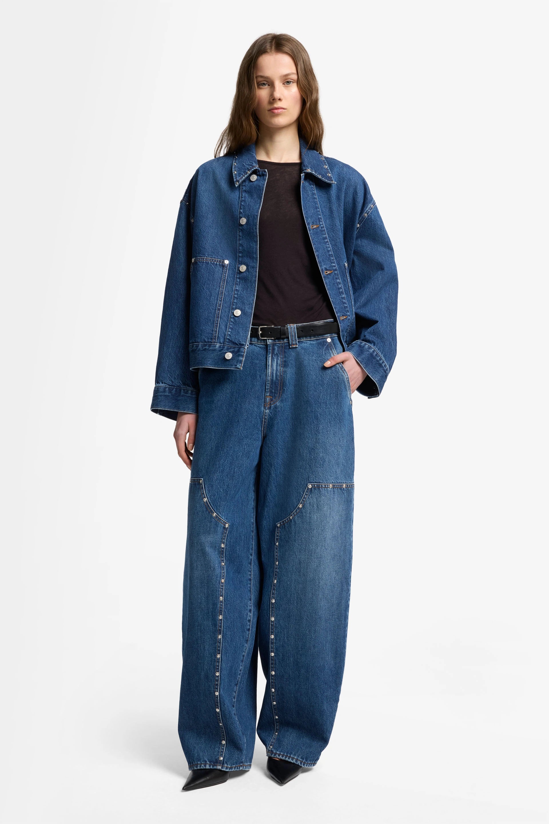 De Cropped Jacket is onberispelijk gemaakt van donkerblauw Mankind-denim en verfraaid met timmermanszakken en zilveren klinknagels. Ontworpen voor een moeiteloos ontspannen pasvorm, ziet het er net zo goed uit met een mini denim rok als met een dramatische jeans met ballonpijpen. De jeans van 7 For All Mankind zijn gemaakt van premium stoffen.