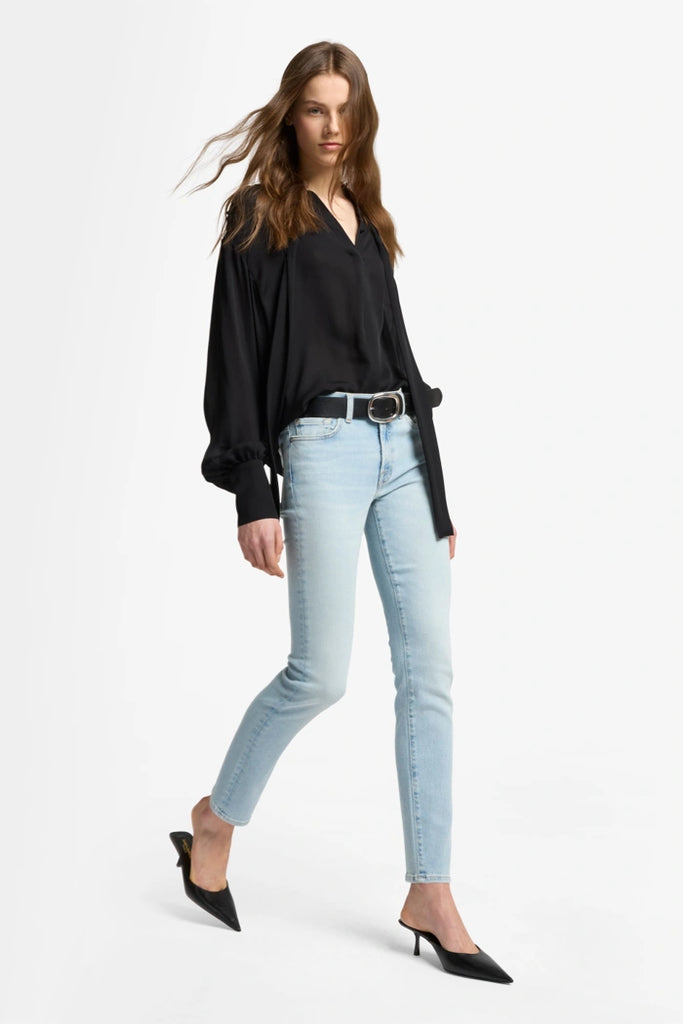 Roxanne is onze skinny spijkerbroek met middelhoge taille, een slanke pasvorm en een doorlopende zoom aan de binnenkant van de pijpen. Hier is hij uitgevoerd in Luxe Vintage denim in een lichtblauwe wassing, met lichte vervagende en used details voor een met liefde gedragen look. Verfraai Roxanne voor 's avonds met een elegante blouse, strakke riem en spitse pumps. De jeans van 7 For All Mankind zijn gemaakt van premium stoffen. -